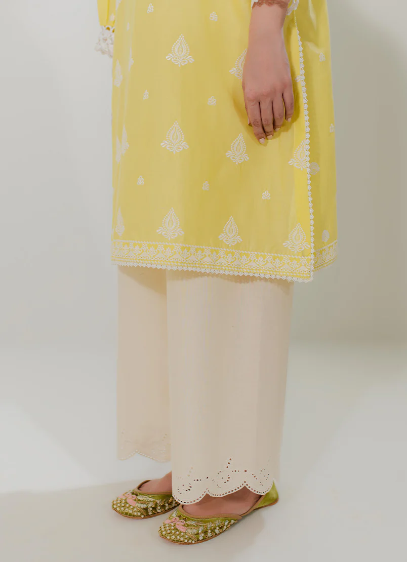 The Ivory Embroidered Izaar from Spring Pret '25 Collection features a straight fit & scallop cutwork embroidery.