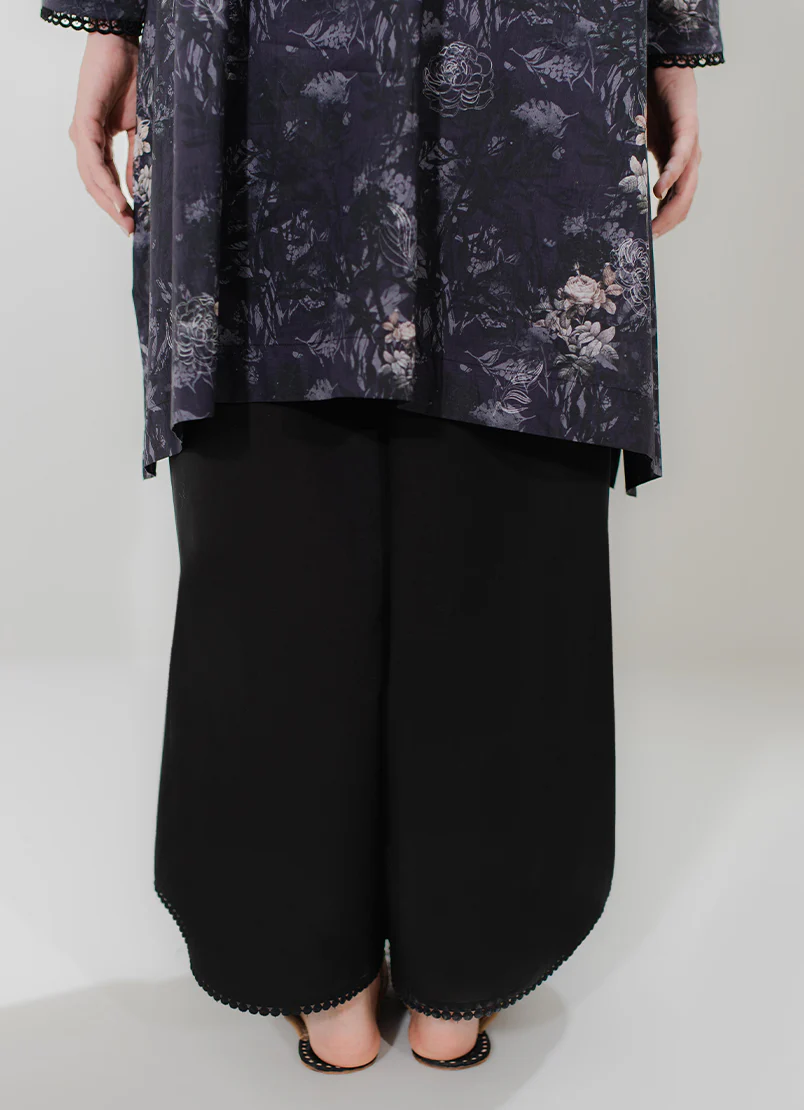 The Black Cotton Tulip Izaar from Spring Pret '25 Collection. Featuring straight fit with lace embellishment.